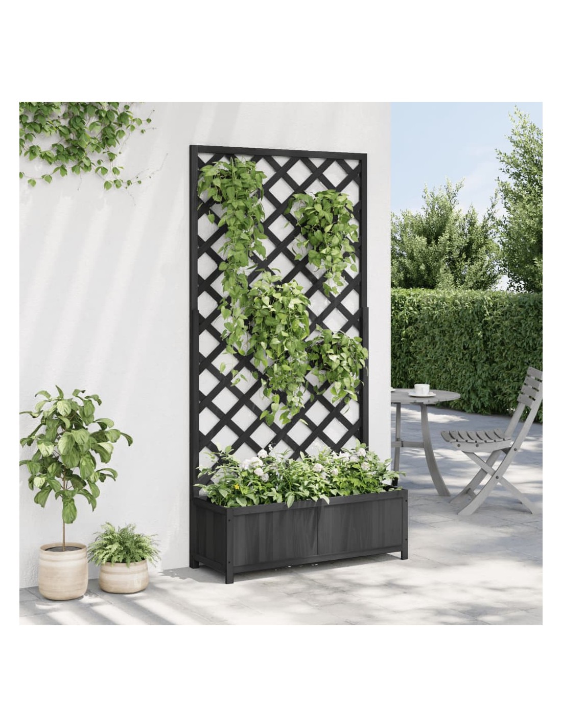 - Решетъчен ограден панел: Плантерът за вътрешен двор се предлага с красив решетъчен ограден панел, който е идеален за поддържане на увивни и висящи растения като рози, бръшлян или лози. Той също така добавя зашеметяваща визуална функция към вашето външно пространство.