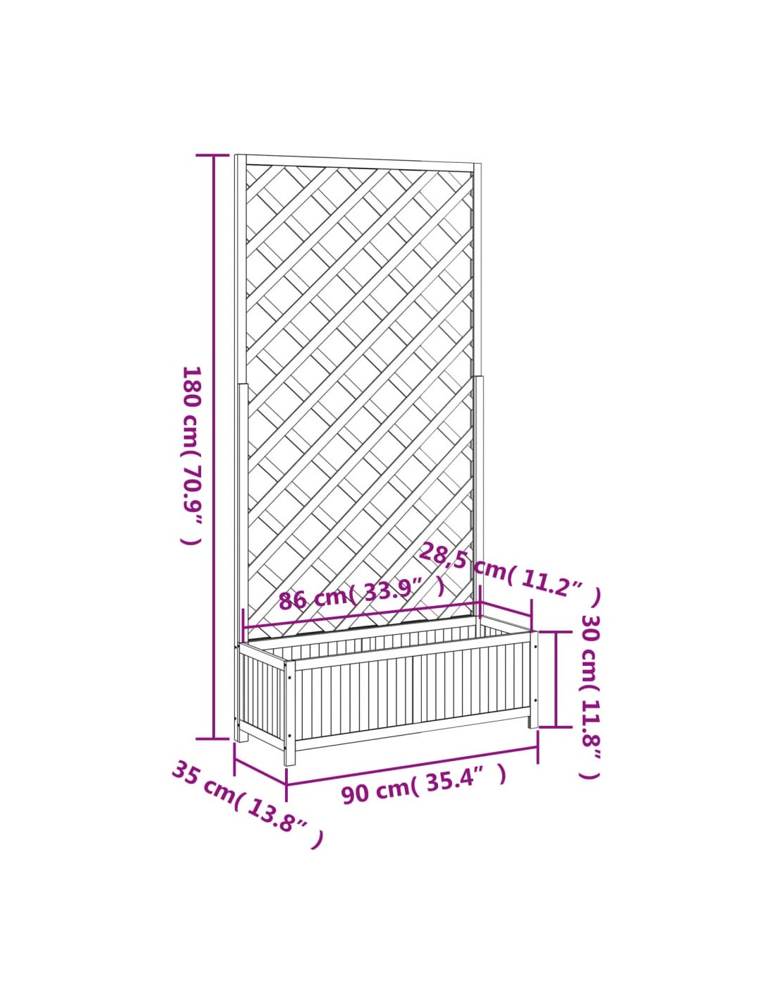 - Размери на сандъка кашпа: 90 x 35 x 30 см (Ш x Д x В)