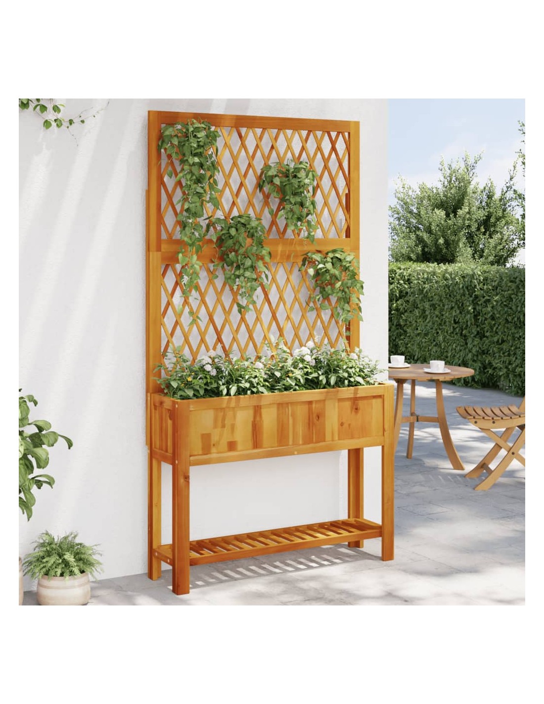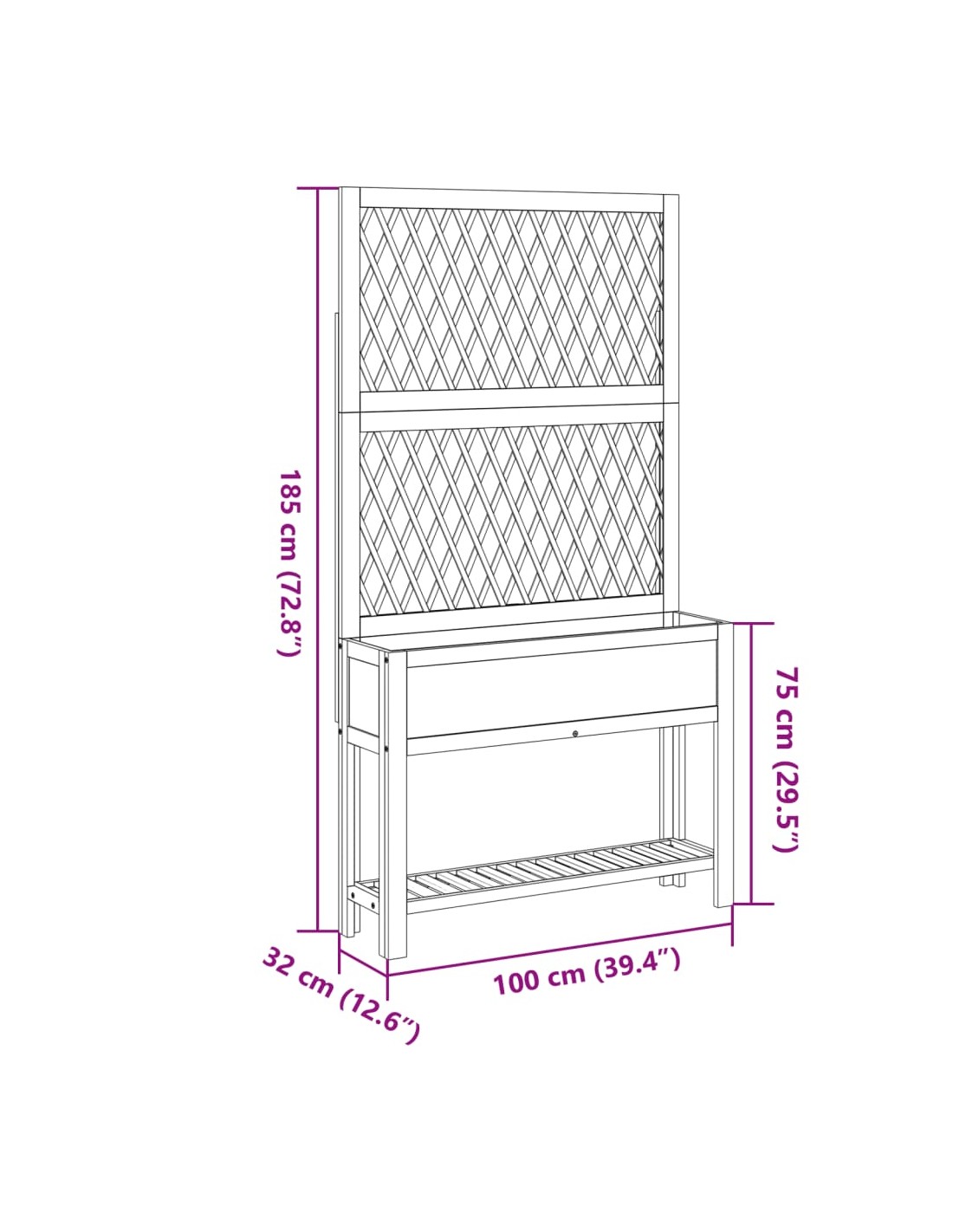 - Решетъчен ограден панел: Плантерът за вътрешен двор се предлага с красив решетъчен ограден панел, който е идеален за поддържане на увивни и висящи растения като рози, бръшлян или лози. Той също така добавя зашеметяваща визуална функция към вашето външно пространство.