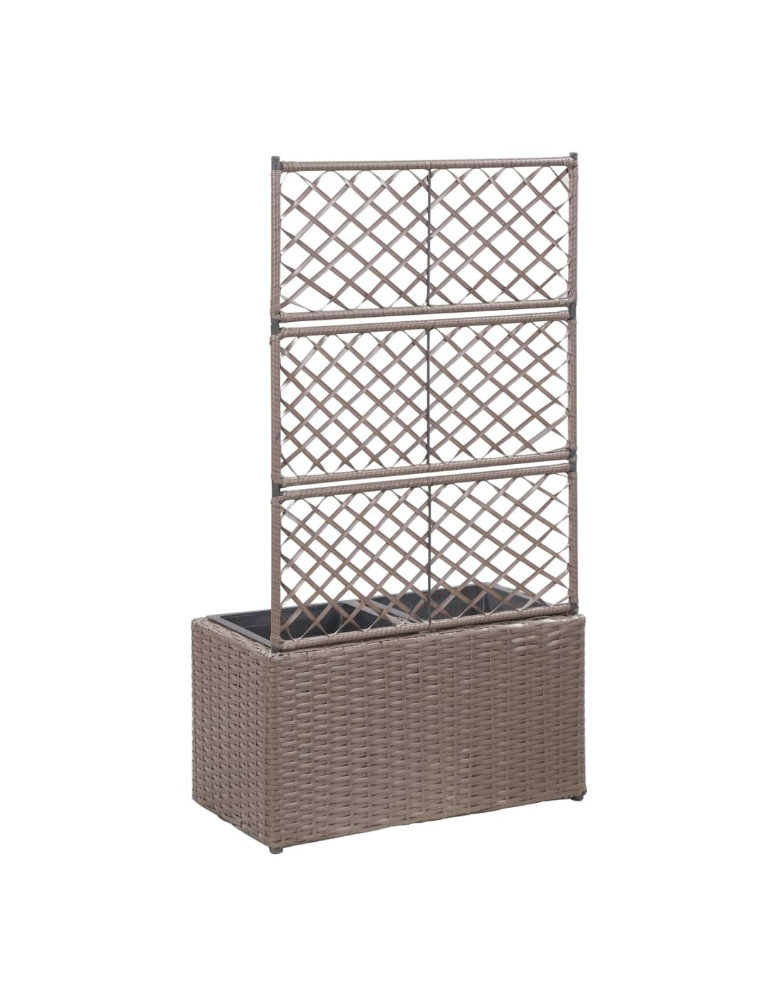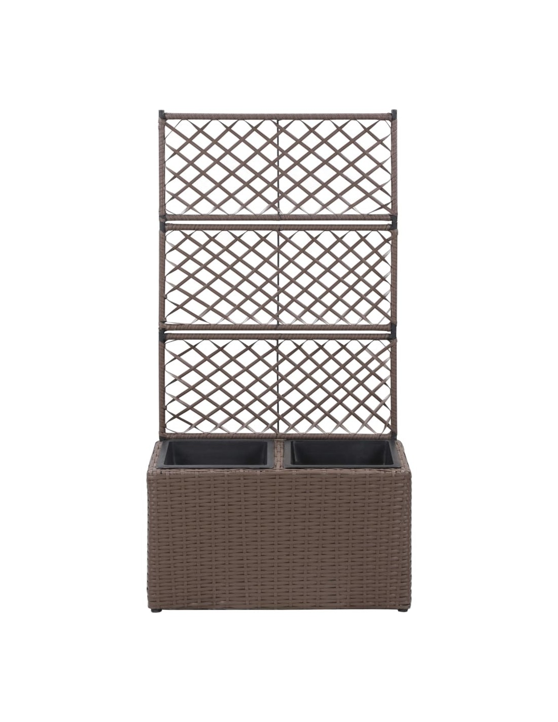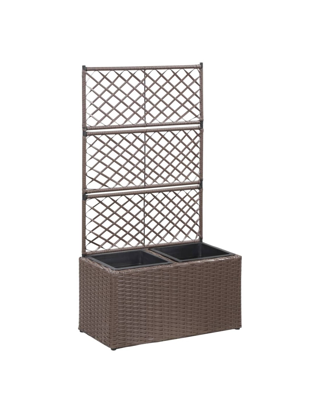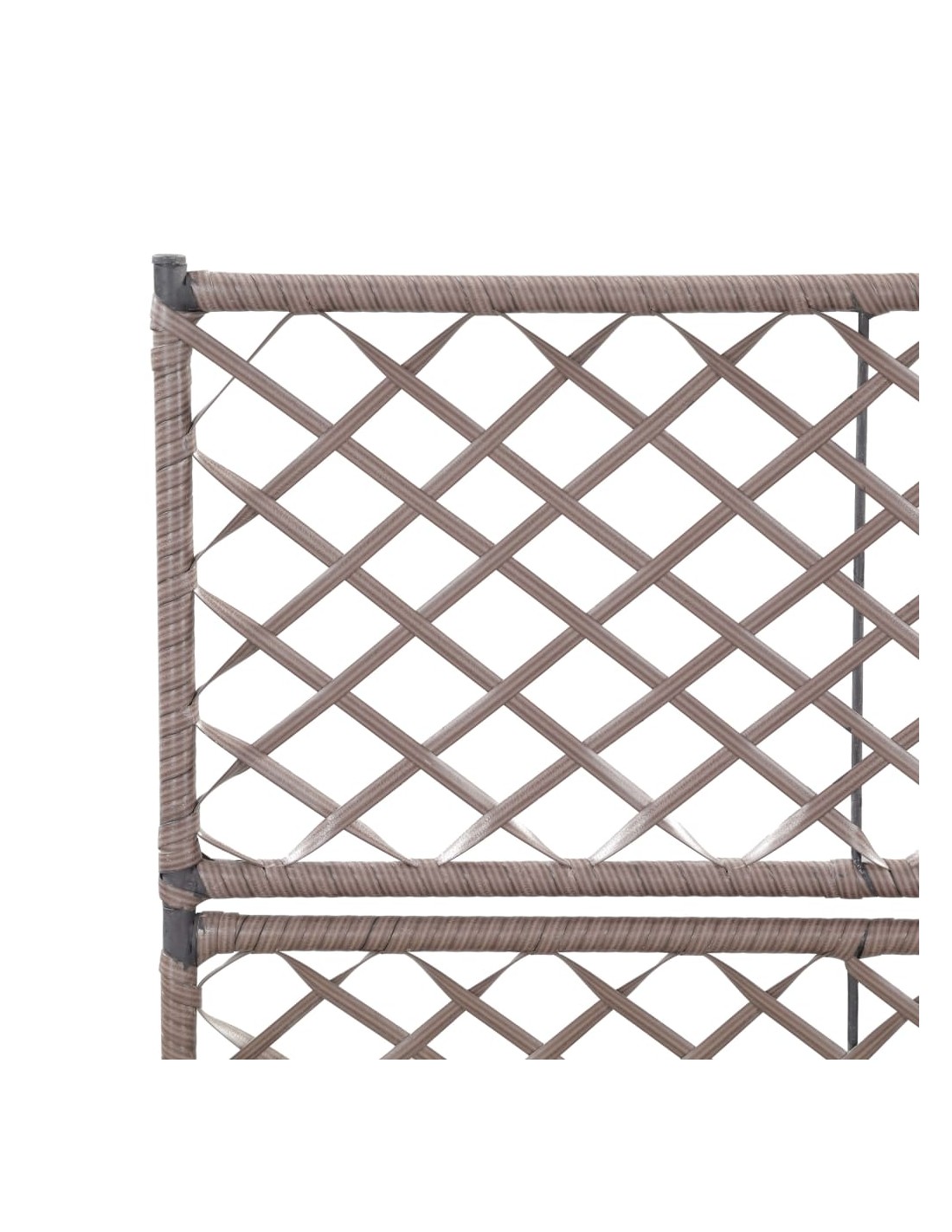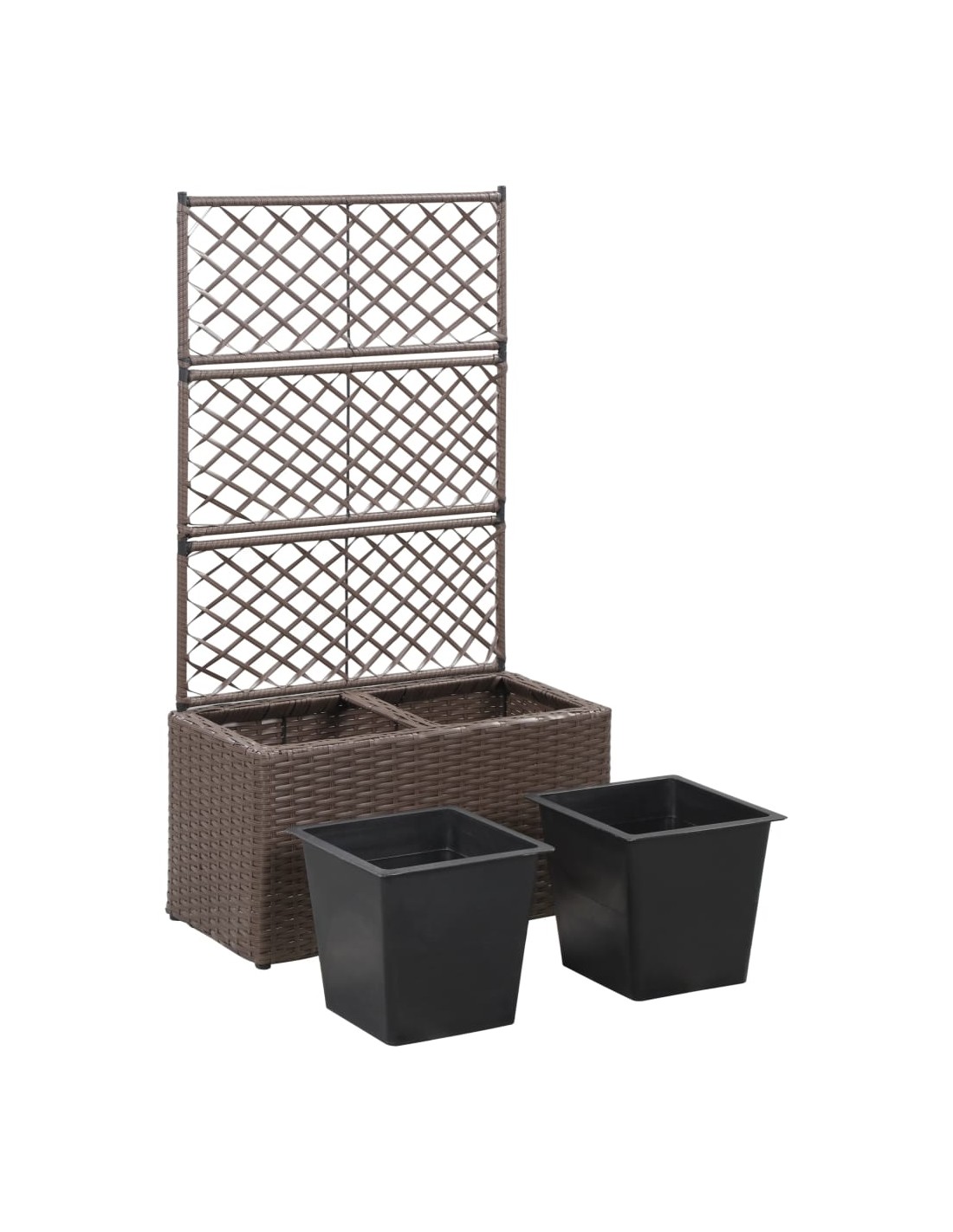 Тази висока леха от полиратан с 2 подвижни саксии, включваща вградена решетка тип пергола, ще добави чаровен щрих към всяко външно пространство.