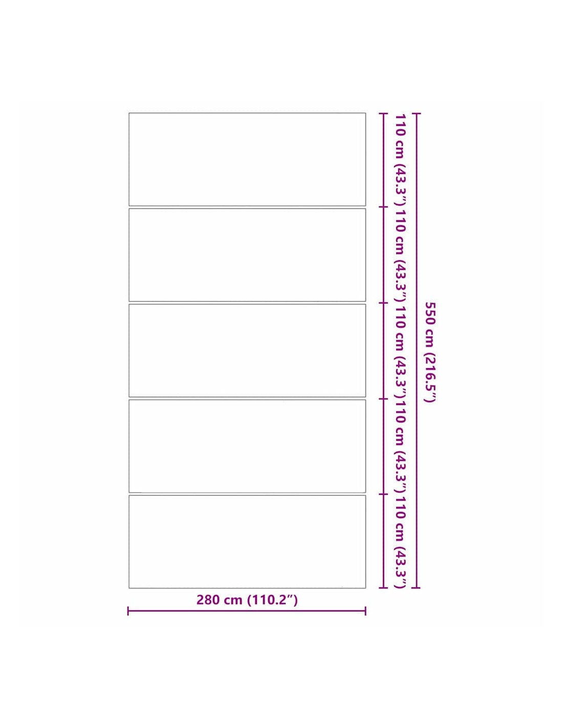 - Общи размери: 550 x 280 x 0.1 cm (Д x Ш x В)