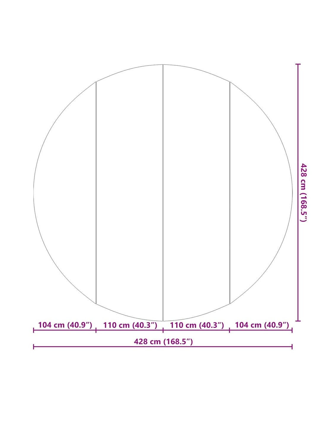- Общи размери: 428 x 428 x 0.1 cm (Д x Ш x В)