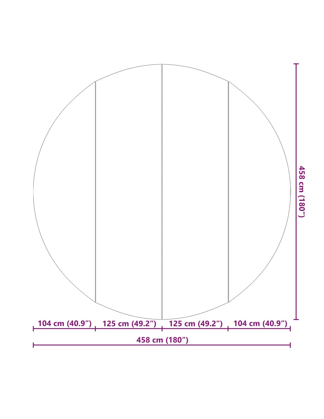 - Общи размери: 458 x 458 x 0.1 cm (Д x Ш x В)