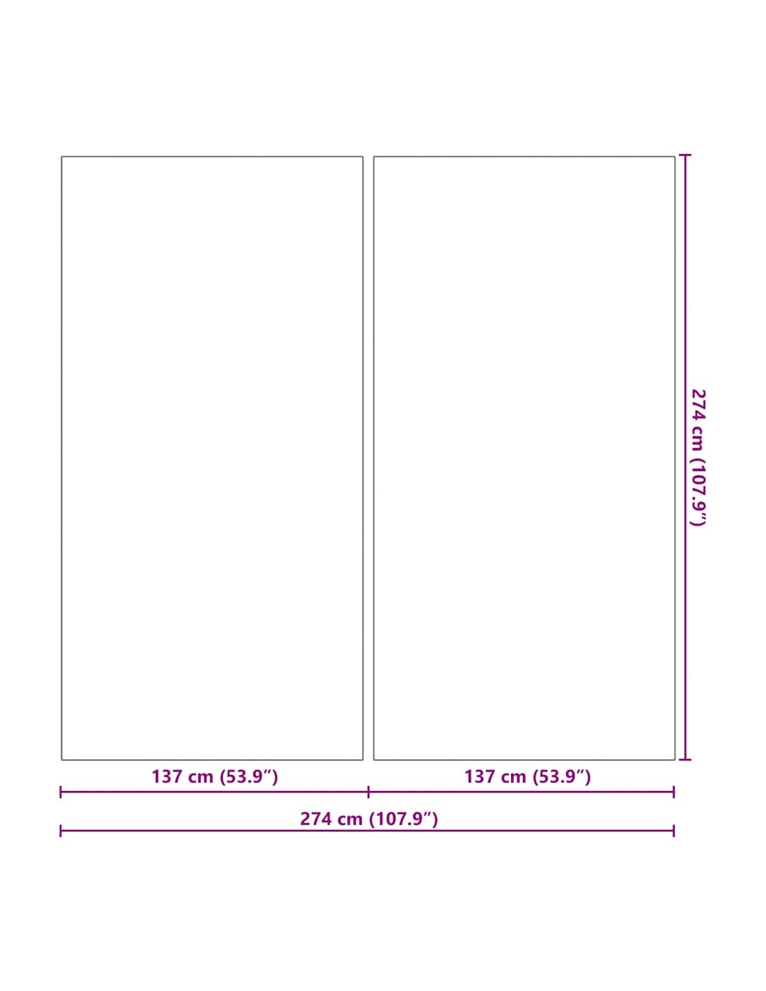 - Общи размери: 274 x 274 x 0.1 cm (Д x Ш x В)