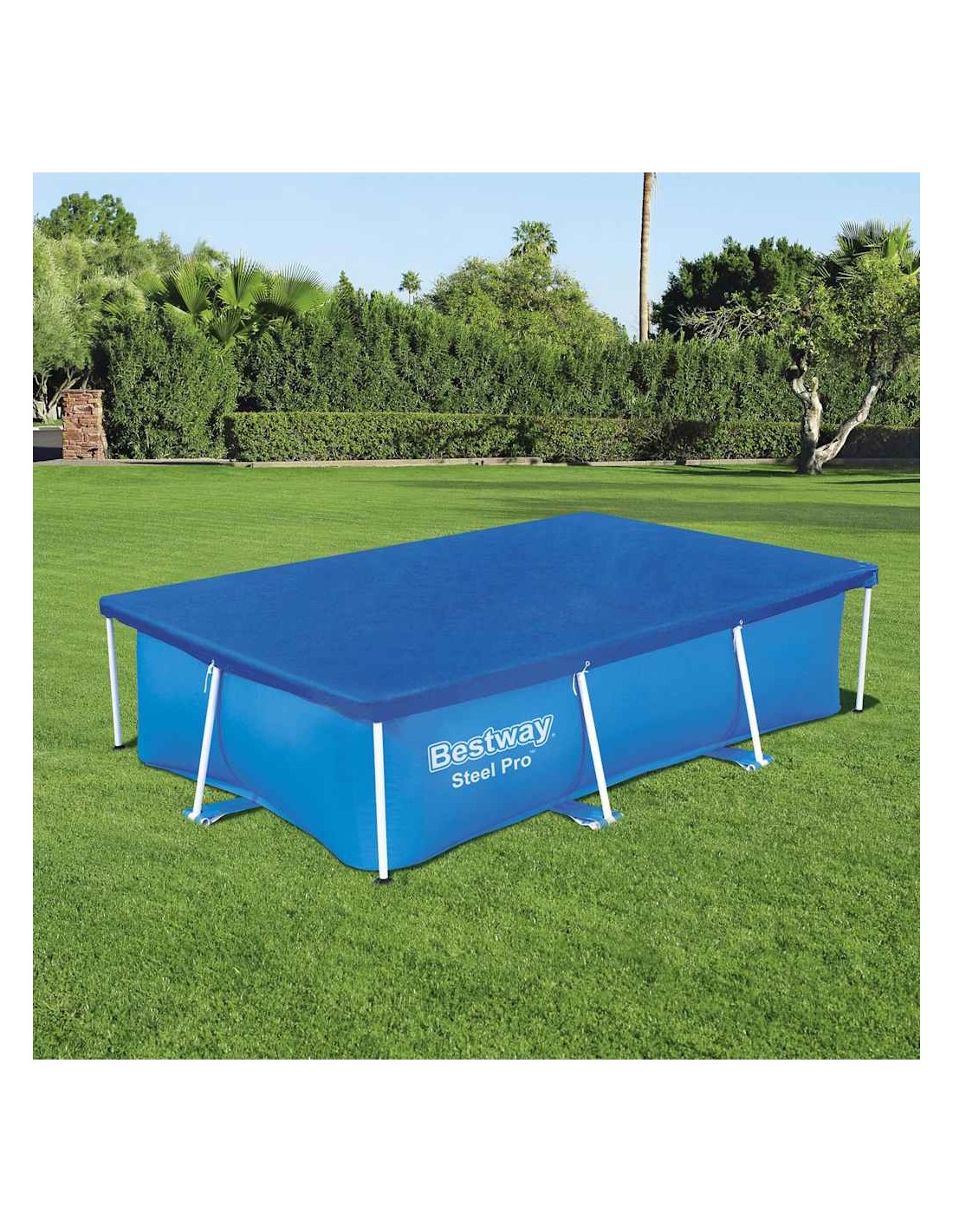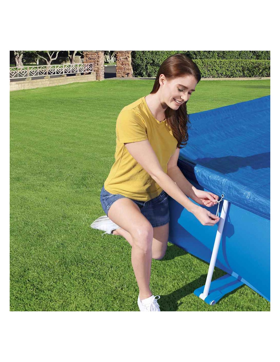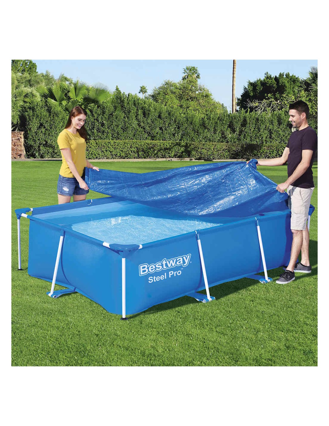 Това покривало за басейни има дренажни отвори, които предотвратяват натрупването на вода върху повърхността му. Покривалото се инсталира лесно, изключително издръжливо е и включва въжета за закрепването му към басейна. Това предпазно покривало за басейн е подходящо за басейни Steel Pro с размери 259x170x61 см.