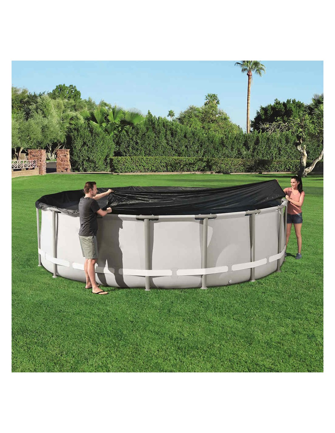 Това покривало за басейни има дренажни отвори, които предотвратяват натрупването на вода върху повърхността му. Покривалото се инсталира лесно, изключително издръжливо е и включва въжета за закрепването му към басейна. Това предпазно покривало за басейн е подходящо за басейни Power Steel и Power Steel Deluxe Series с диаметър 488 см и басейни Hydrium с размери 460x120 см.