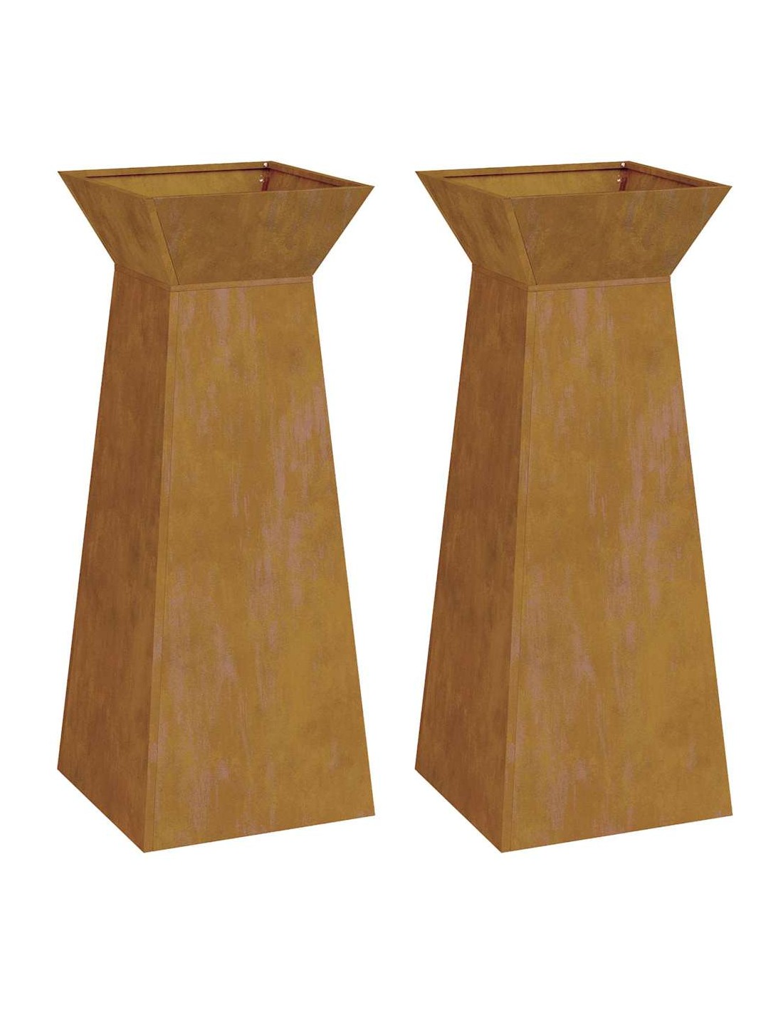 Саксия с колона 2 бр. Сребриста 40x40x100 cm Стомана - VL873865