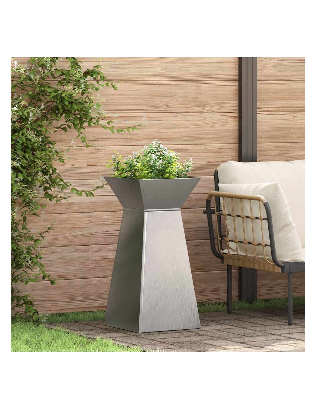 • Здрава стоманена конструкция Направен е от здрави материали, осигуряващи дълготрайност и устойчивост. Изграден е да устои на времето, така че можеш да му се довериш в градината или на терасата. Здравият му дизайн осигурява отлична основа за всякакви растения, добавяйки стил.