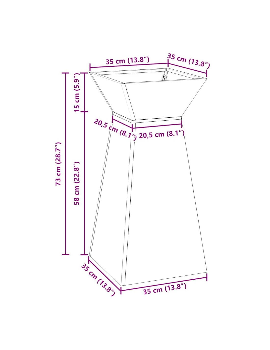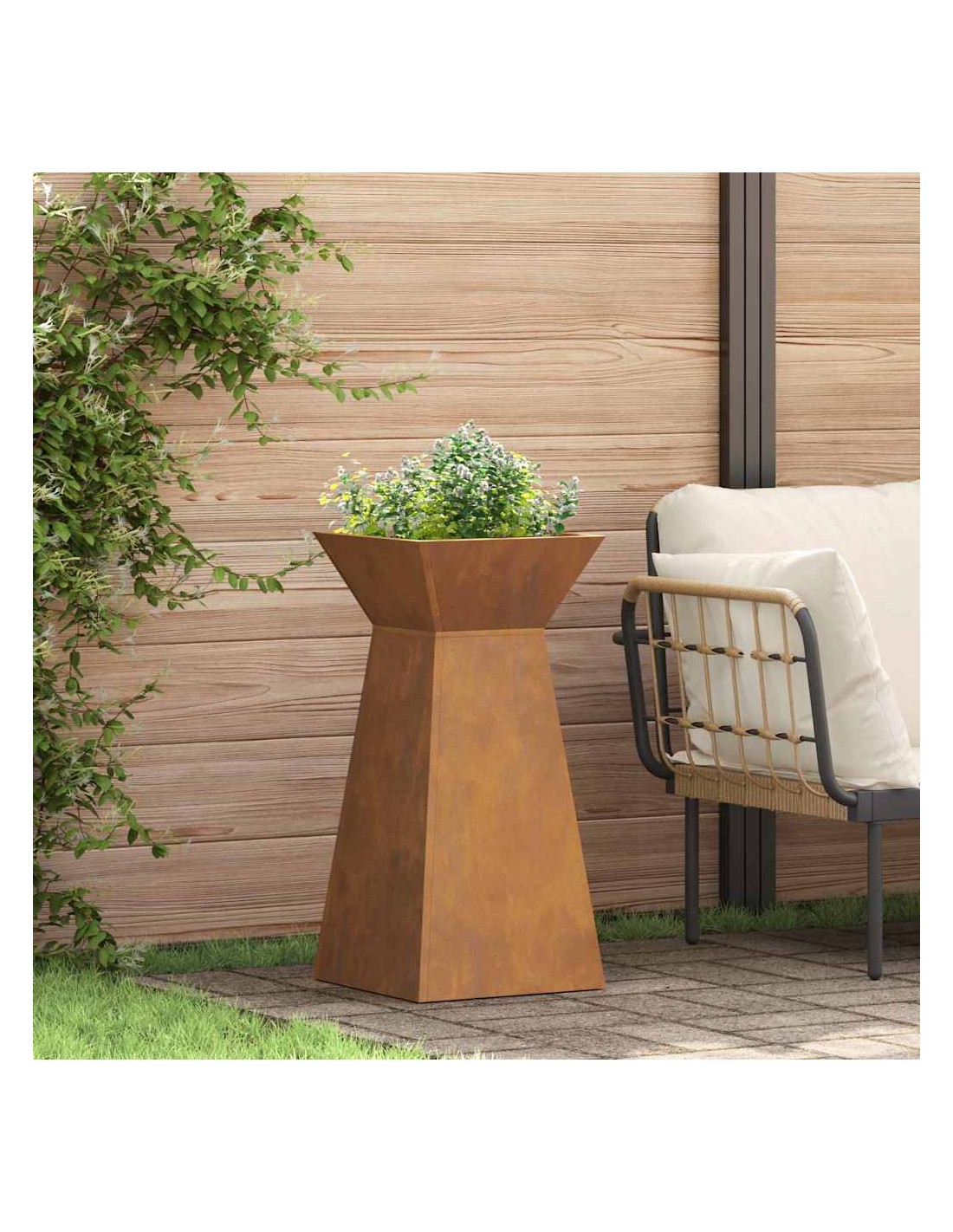 • Здрава стоманена конструкция Направен е от здрави материали, осигуряващи дълготрайност и устойчивост. Изграден е да устои на времето, така че можеш да му се довериш в градината или на терасата. Здравият му дизайн осигурява отлична основа за всякакви растения, добавяйки стил.