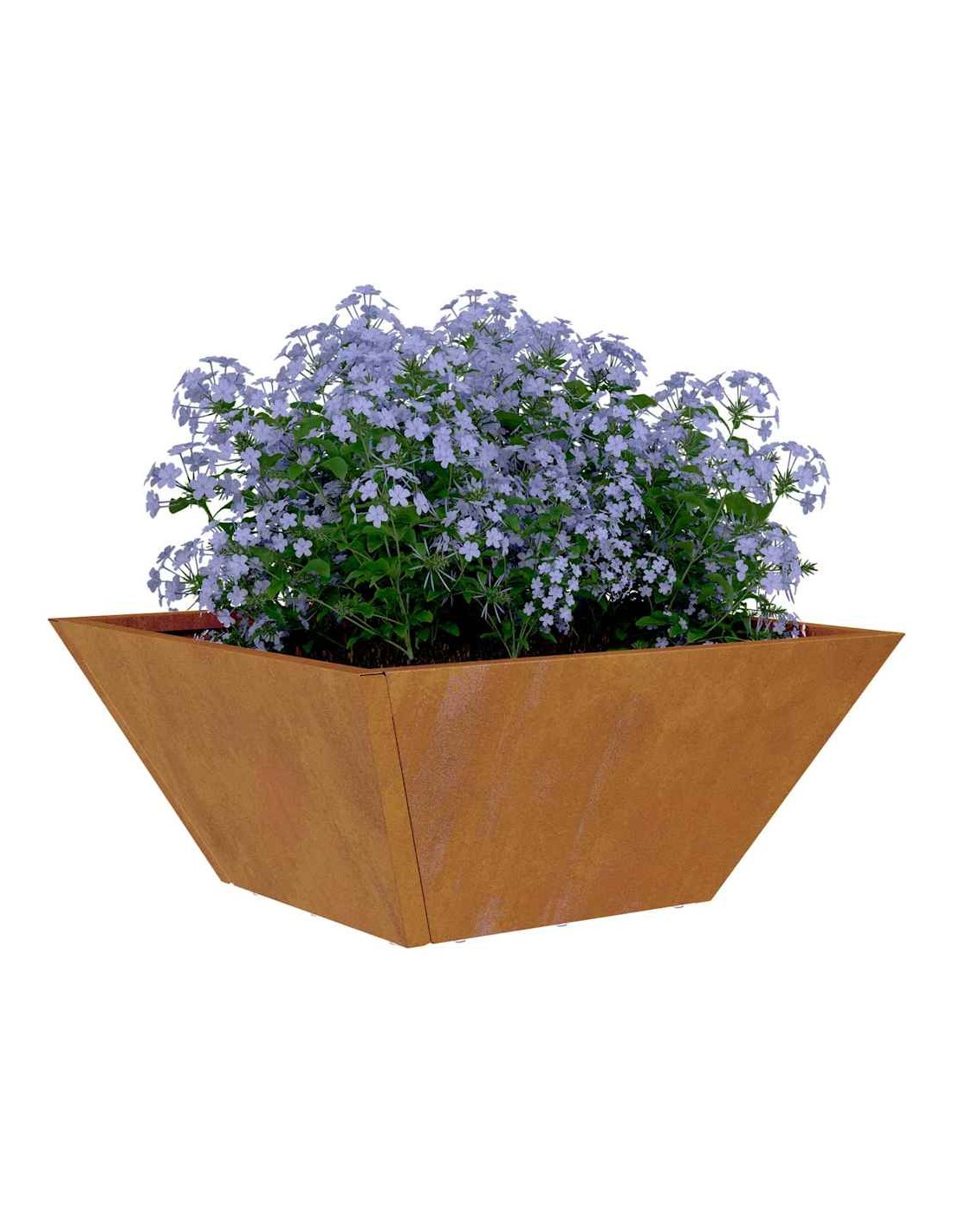 Добавете уникален и модерен акцент към вашата градина или тераса с този метален съд за растения с рустик ефект. Изработен от патинираща стомана, той развива естествена патина с времето, която му придава очарованието на ръжда, но без да компрометира здравината на материала. Този съд е идеален за тези, които търсят модерен дизайн с натурален завършек, който се променя и става все по-красив с годините. Матовото покритие и декоративните елементи подчертават красотата на вашите растения, създавайки завършен и стилен вид.