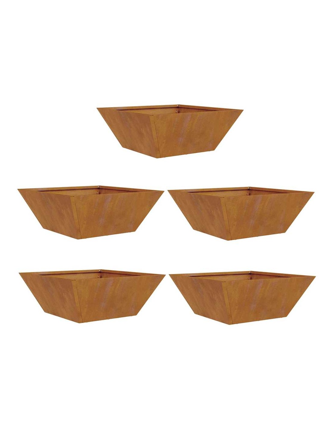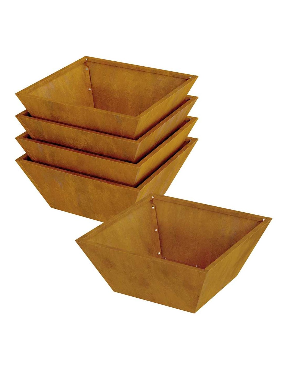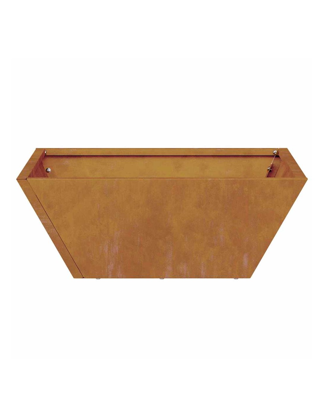 Внесете нотка елегантност и съвременен стил във вашите външни пространства с този изключителен метален съд за растения. Проектиран да издържи на атмосферните влияния, той е идеалният избор за обогатяване на вашата градина, тераса или балкон. Неговите изчистени линии и ръждясало матово покритие създават впечатляващ контраст със свежестта на всякакви цветя и зеленина, превръщайки го в забележителен акцент във всеки модерен декор. Този продукт е създаден да бъде едновременно красив и функционален, като осигурява стабилна и просторна среда за вашите любими растения.