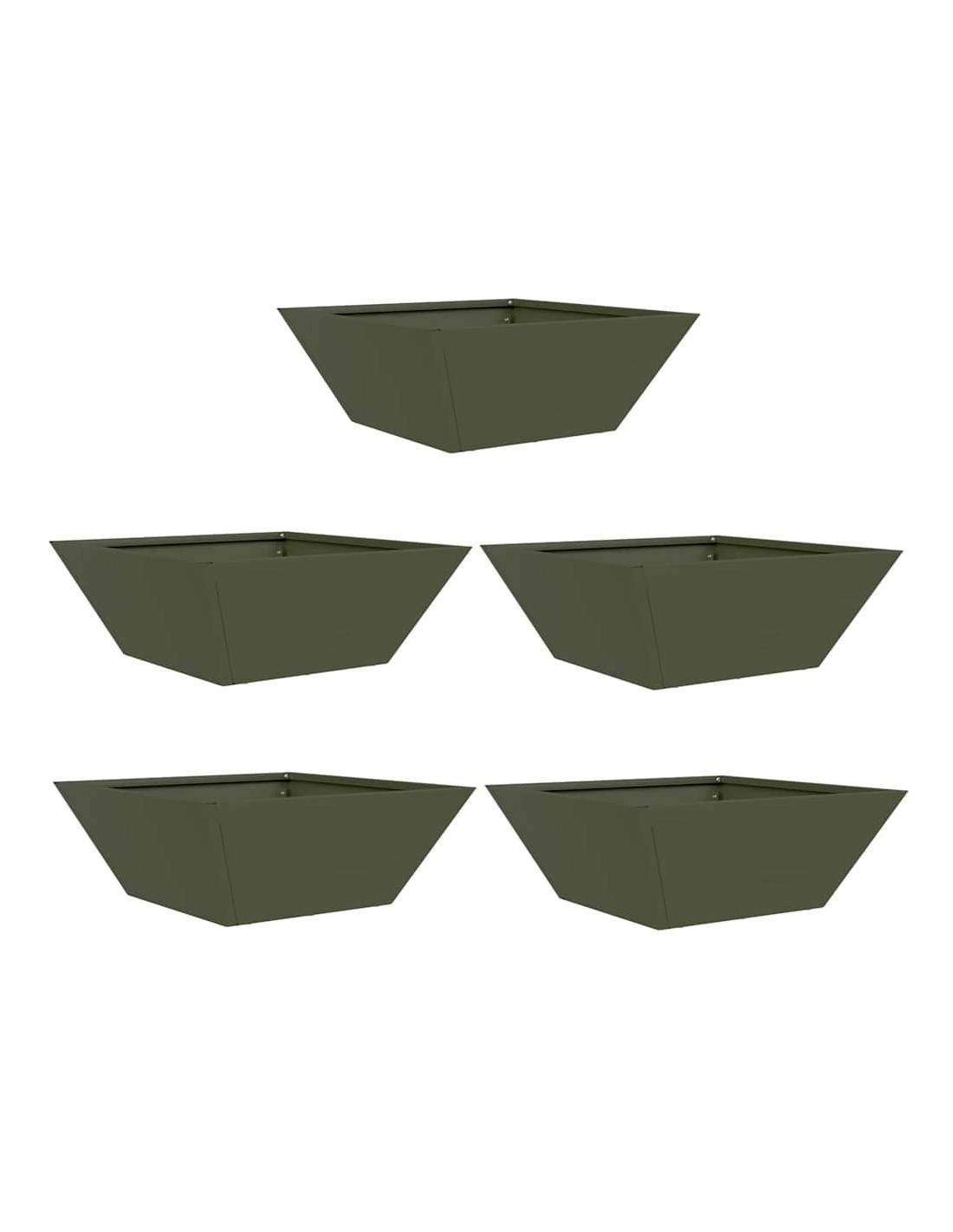 Внесете нотка изискан минимализъм във вашето открито пространство с този стилен метален съд за растения. Проектиран да съчетае съвременен дизайн и функционалност, той е идеалното допълнение за вашата градина, тераса или балкон. Неговите изчистени линии и елегантен маслиненозелен цвят превръщат всяко растение в акцент, добавяйки свежест и модерен чар към вашия дом.