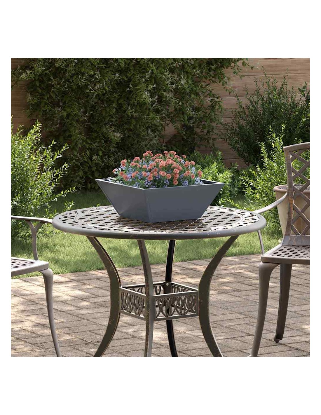 Този градински съд е изработен от висококачествена стомана, което гарантира неговата здравина и дълготрайна стабилност. Здравата метална конструкция е специално обработена, за да бъде устойчива на променливи атмосферни условия, превръщайки го в стабилно и надеждно допълнение към вашето открито пространство. Съдът е UV-устойчив, което е ключово за предотвратяване на повреди от слънцето и запазване на наситения цвят антрацит през цялото лято и отвъд него. Фините декоративни елементи допълват цялостния вид, повишавайки стила на съда и улеснявайки интегрирането му във всяка градина.