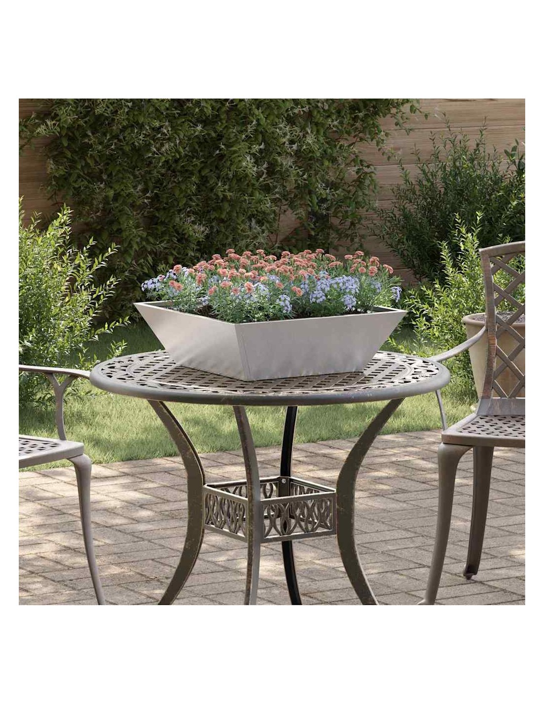 • Здрава метална конструкция Този градински съд е изработен от качествен метал и изглежда стегнато. Избраната метална материя е устойчива на времето, което го прави стабилно допълнение за твоето открито пространство.